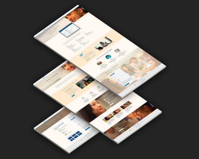images (from top left): 1 & 2. Large OOH ads (US). 3 & 4: Digital bus shelter ads. 5: Some of the social ads. 6: Three landing pages for different stages in the funnel. 7: Animated display ads. 8: a fully printed ‘campaign book’ to promote the campaign.