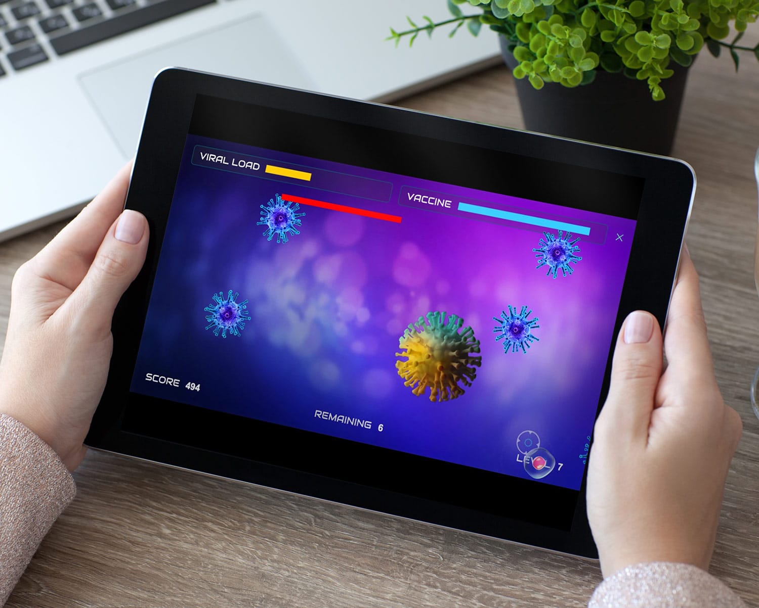 I was inspired to create a retro-style arcade game that enabled us all to take out some post-pandemic frustration on the Covid invaders. Initially devised as a prototype for a pitch, I later developed it into a fully working game. It was a great excuse to teach myself some JavaScript coding, the game was created entirely from scratch using CreateJS and Adobe Animate.