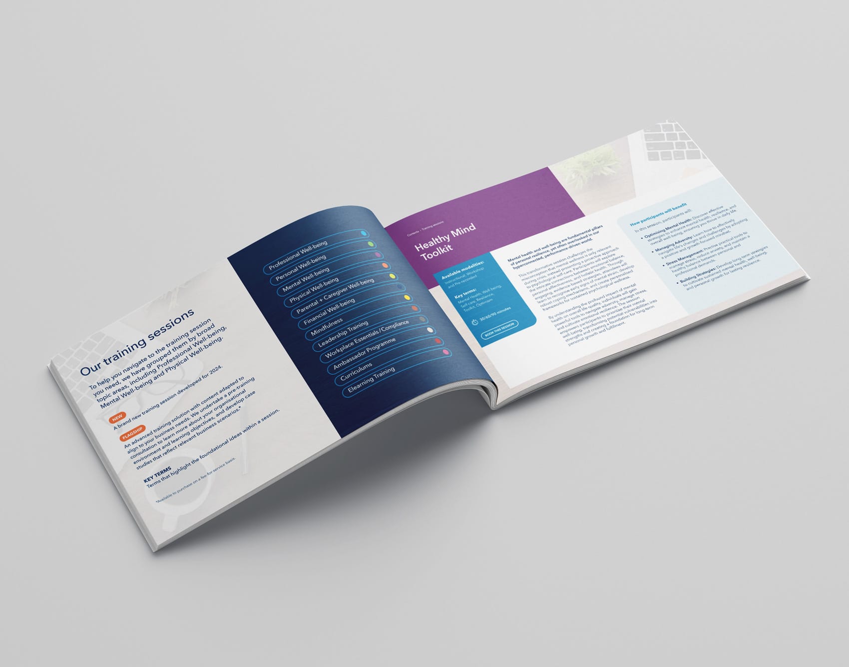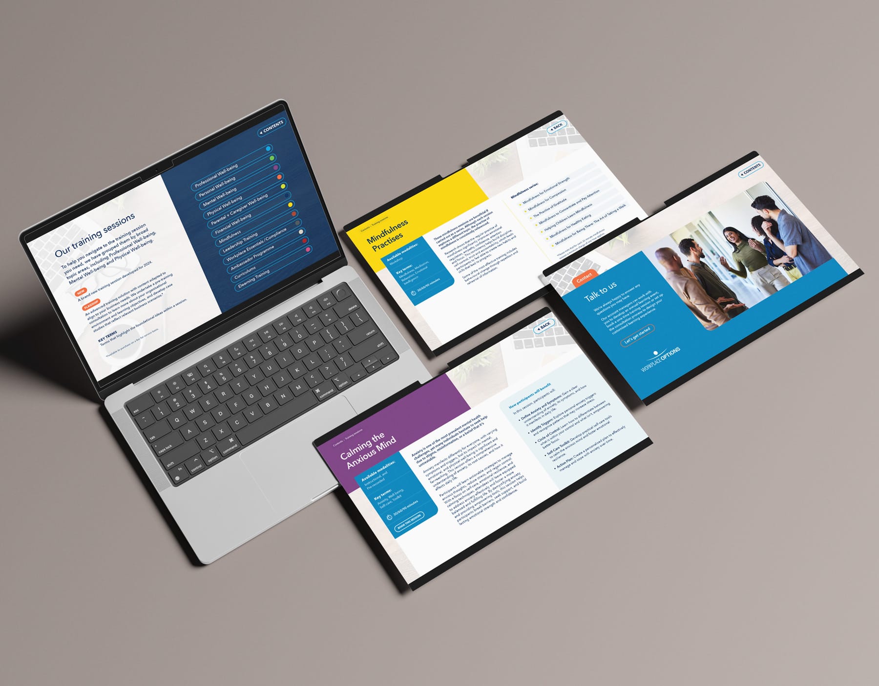 Workplace Options is the world’s largest independent provider of employee wellbeing training solutions. They offer a wide range of services and training programs. To promote and support this, they create their own A4 in-house guides, usually created in Word or PowerPoint. However, these are awkward to use and don’t present the brand in a good light.